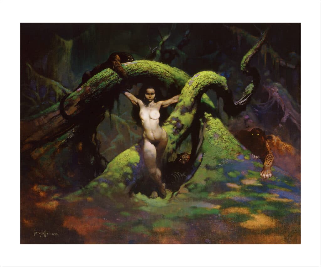 Frank Frazetta (1928-2010) was an American artist and one of the most renowned and well-known illustrators of the 20th century, creating paintings for magazines, books, album covers and movie posters. He is often referred to as the “Godfather of Fantasy Art,โ setting a new standard for genre art around the world and influencing generations of painters.